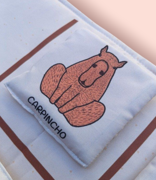 El tablero mide 43 x 50 cm, esta relleno con guata y forrado en la parte trasera (podes elegir el color de tu sala)